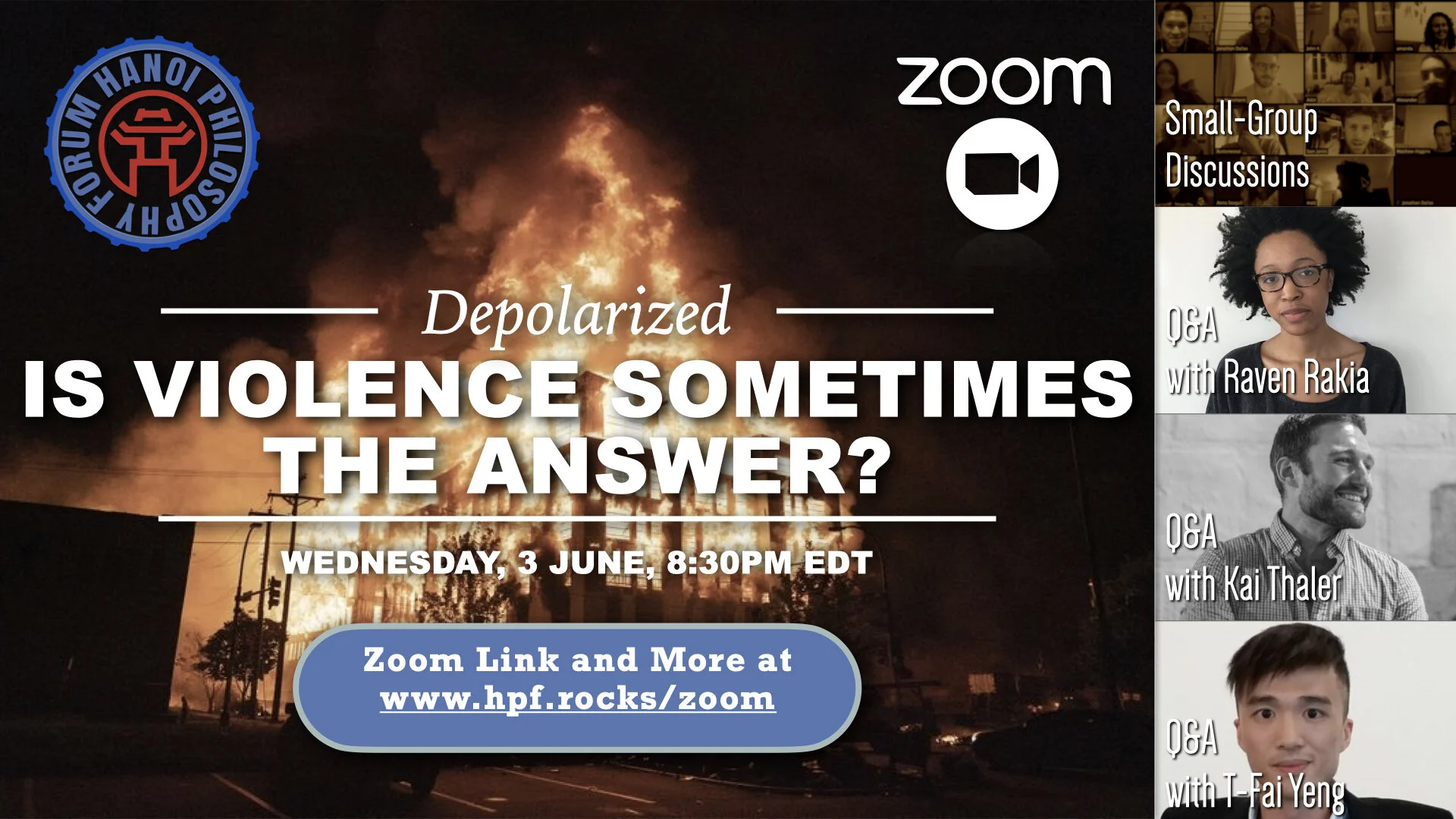 The world is desperately in need of a discussion on whether or not violence is ever justified in the face of injustice. Join the Hanoi Philosophy Forum live on Zoom for discussions, talks, Panelist Q&As, and more. We are hosting two identical events - one for American timezones at 8:30pm EDT and one for Asian timezones at 8:30pm ICT (9:30pm HKT).